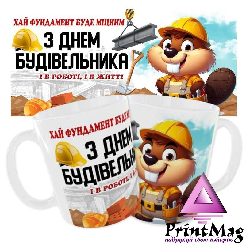Чашка «З Днем Будівельника. Хай фундамент буде міцним».
