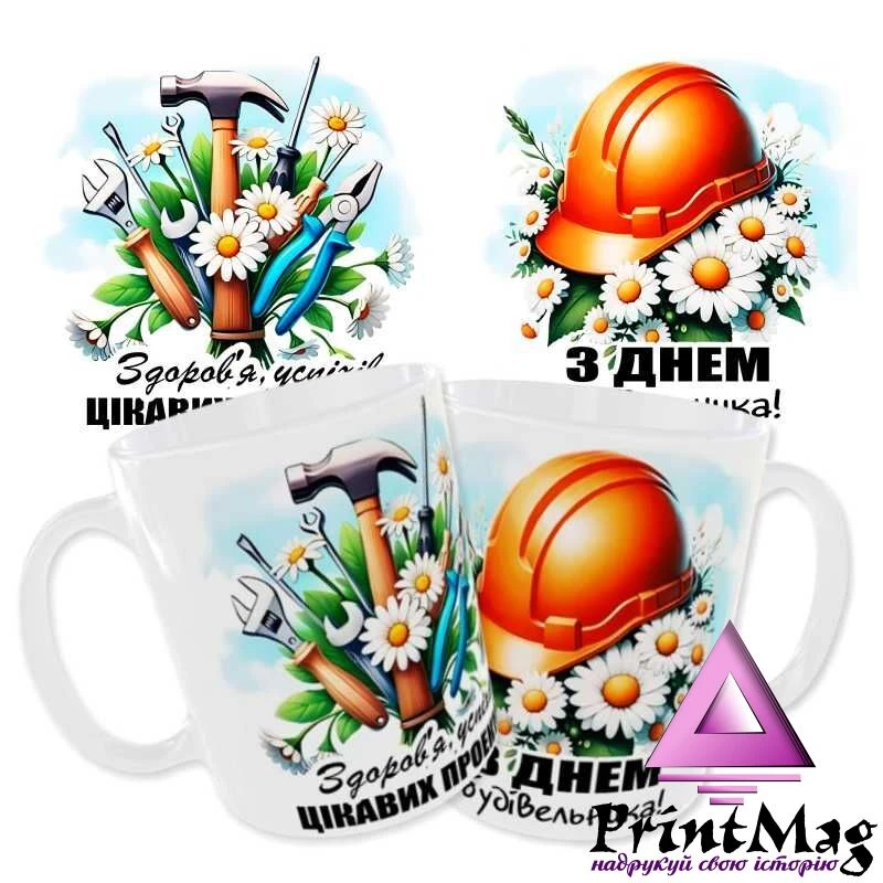 Чашка «З Днем Будівельника. Здоров’я, успіхів, цікавих проектів». Принт з обох боків.