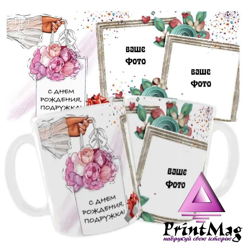 Чашка «З днем народження. Подруго». З протележного боку можна добавити Ваші фото.