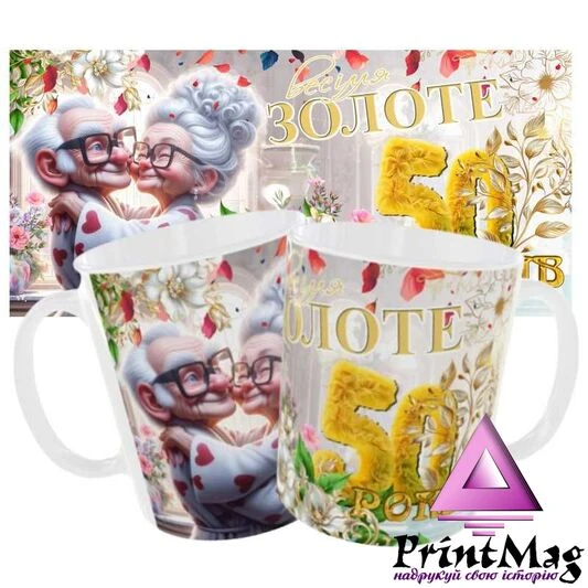 Чашка «Золоте весілля. 50 років». Подарунок на річницю. Чашка з тематичним принтом - чудовий подарунок на річницю весілля, подарунок на ситцеве весілля! Хочете здивувати близьку людину? Замовте чашку з оригінальним і пам'ятним написом та з картинкою. Якщо цікавить ОПТ – ТЕЛЕФОНУЙТЕ.