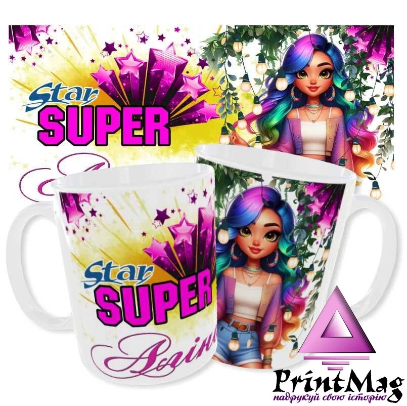 Іменна Чашка «Super Star Аліна». Корисний сувенір до будь-якого свята з символічним малюнком та іменним написом миттєво підніме настрій і порадує свого власника.