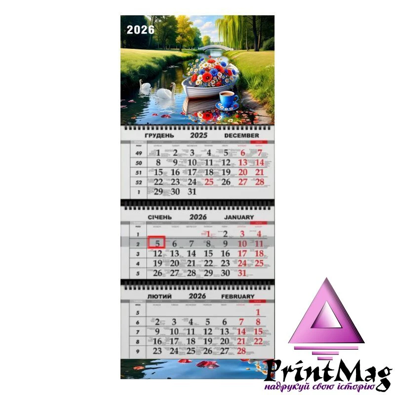Квартальний календар на 2026 рік "Човен з квітами" К055