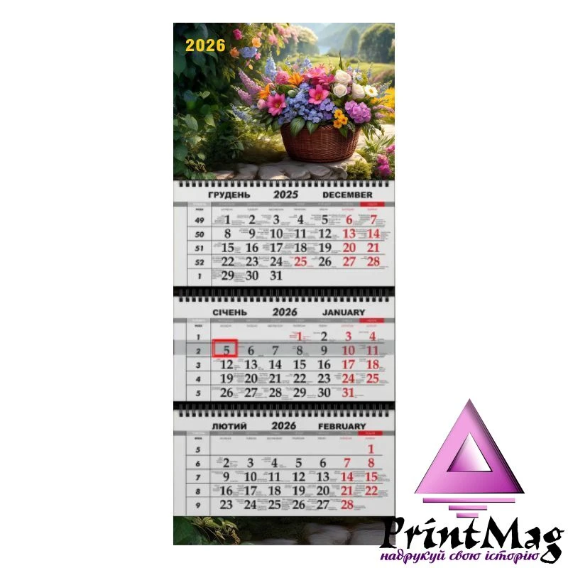 Квартальний календар на 2026 рік "Кошик квітів" К049