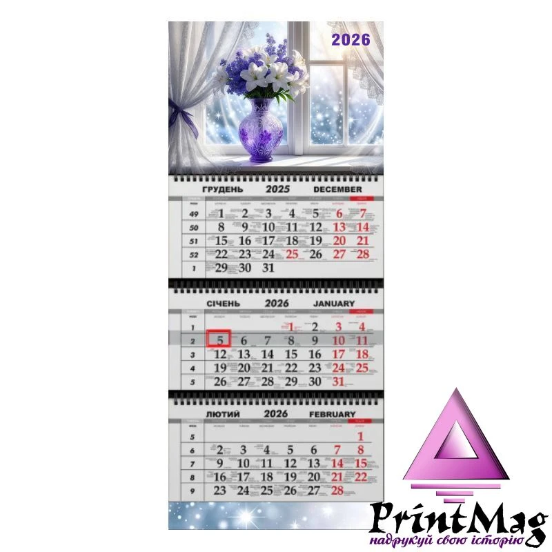Квартальний календар на 2026 рік "Квіти на вікні" К038