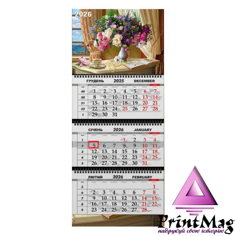Квартальний календар на 2026 рік "Натюрморт з квітами " К051