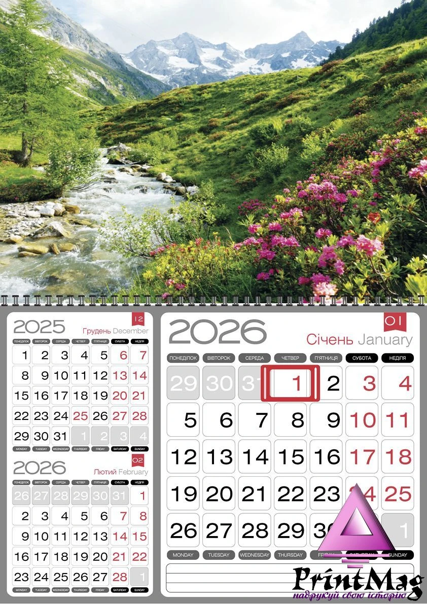Квартальний календар на 2026 рік "Природа" на 1 пружині К074