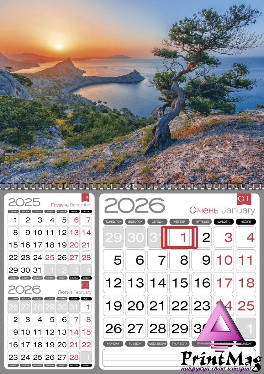 Квартальний календар – один із самих популярних новорічних подарунків для своїх партнерів та потенційних клієнтів. Він зручний у використанні, не займає багато місця та може бути чудовим доповненням інтер’єру офісу. Квартальний календар допоможе у роботі як бухгалтеру, так і керівнику підприємства. Це чудовий спосіб нагадувати про себе цілий рік!