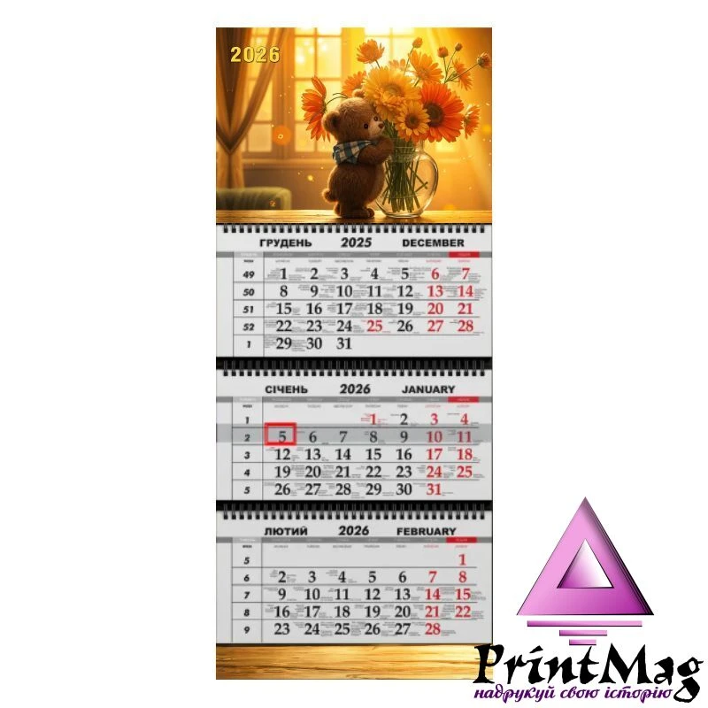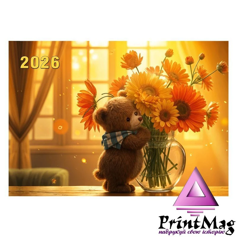 Квартальний календар на 2026 рік "Ведмедик з квітами" К052