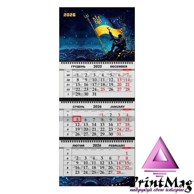Квартальний календар на 2026 рік "Воїн з прапором" К022