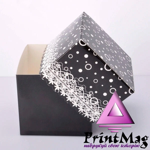 УПАКОВКА ДЛЯ ЧАШОК 330мл З ПРИНТОМ АЖУРНА (ЧОРНА) - 1