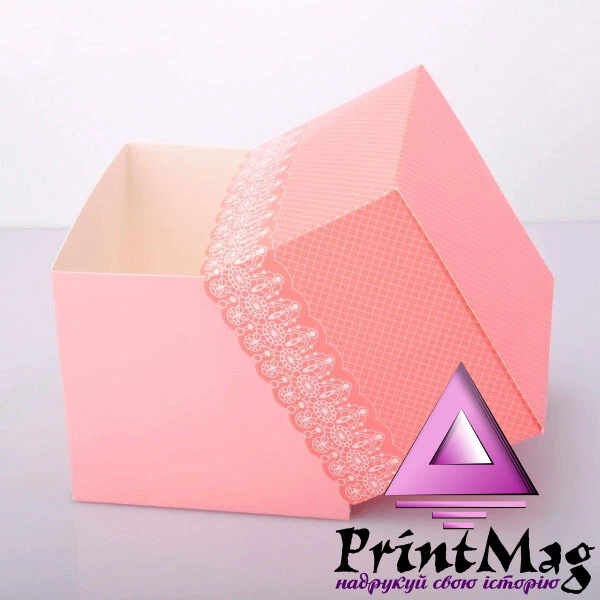 Подарункова упаковка з картону з кришкою. Упаковка відправляється в розібраному вигляді.