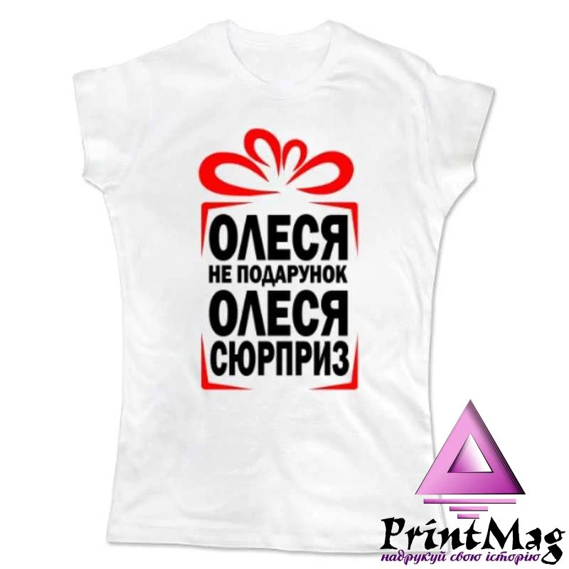Жіноча футболка Олеся не Подарунок – Сюрприз